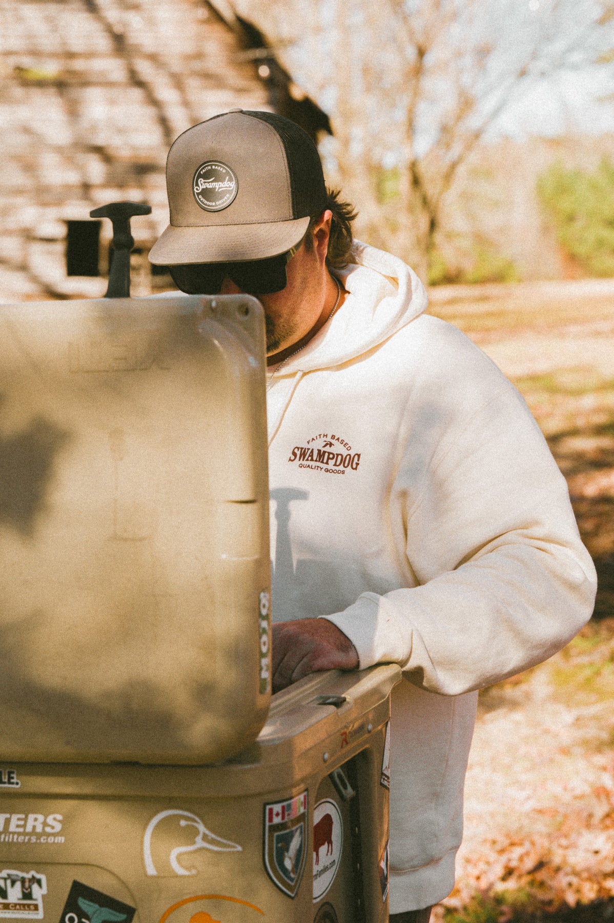 Forged for the hunt, grounded in truth. The Born for Adversity Hoodie is built from our midweight 8.5 oz (280 gsm) cotton/polyester blend fleece—durable, soft, and ready for the grind. Its classic fit and sturdy construction make it the perfect layer for chilly mornings in the blind or long days in the field.