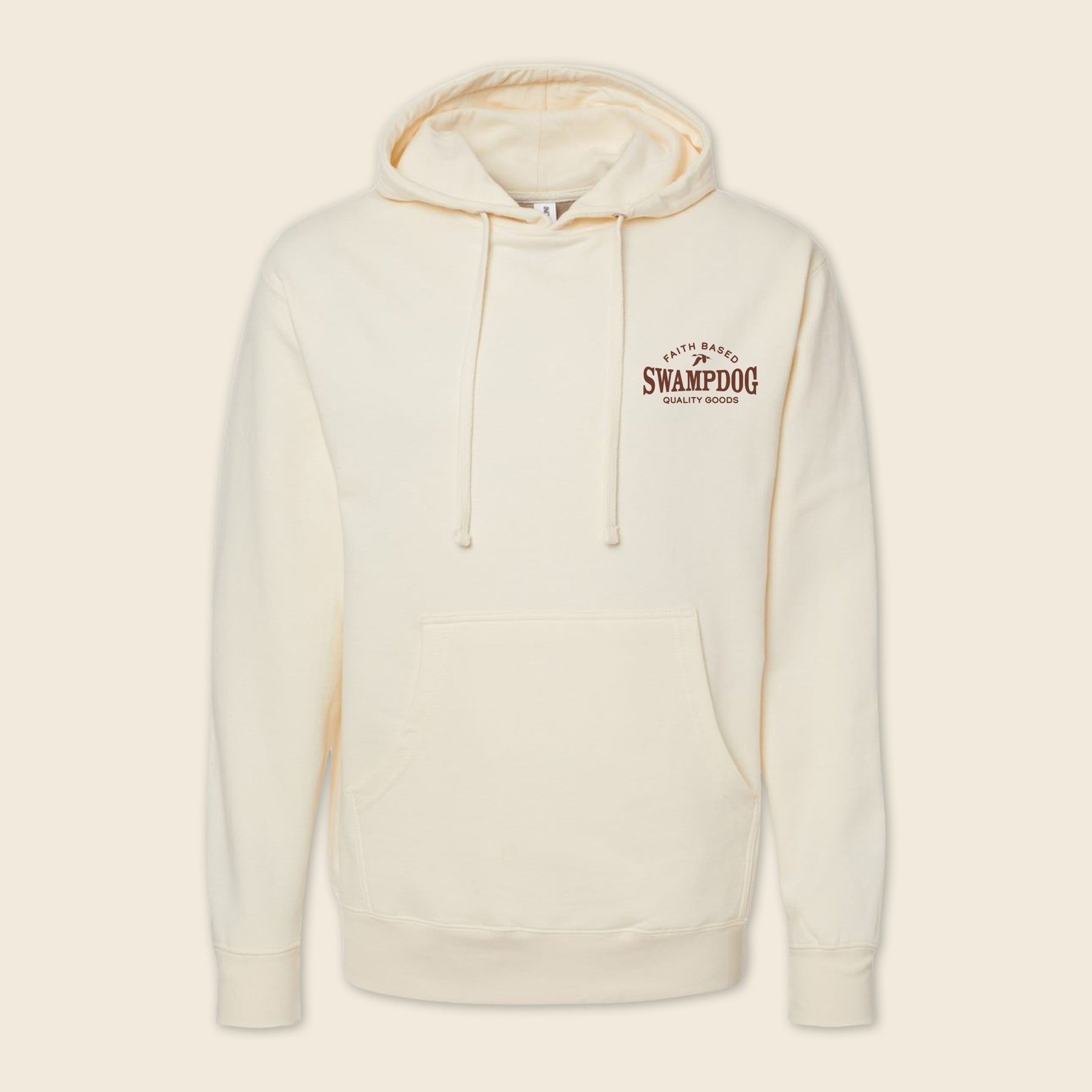 Finished with our signature left chest logo, this hoodie carries the same conviction as the men who wear it: built to endure, built to believe.